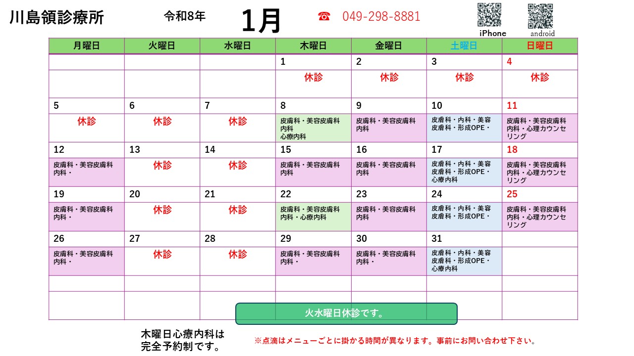 ※ 1月は8日(木)から診療再開いたします。