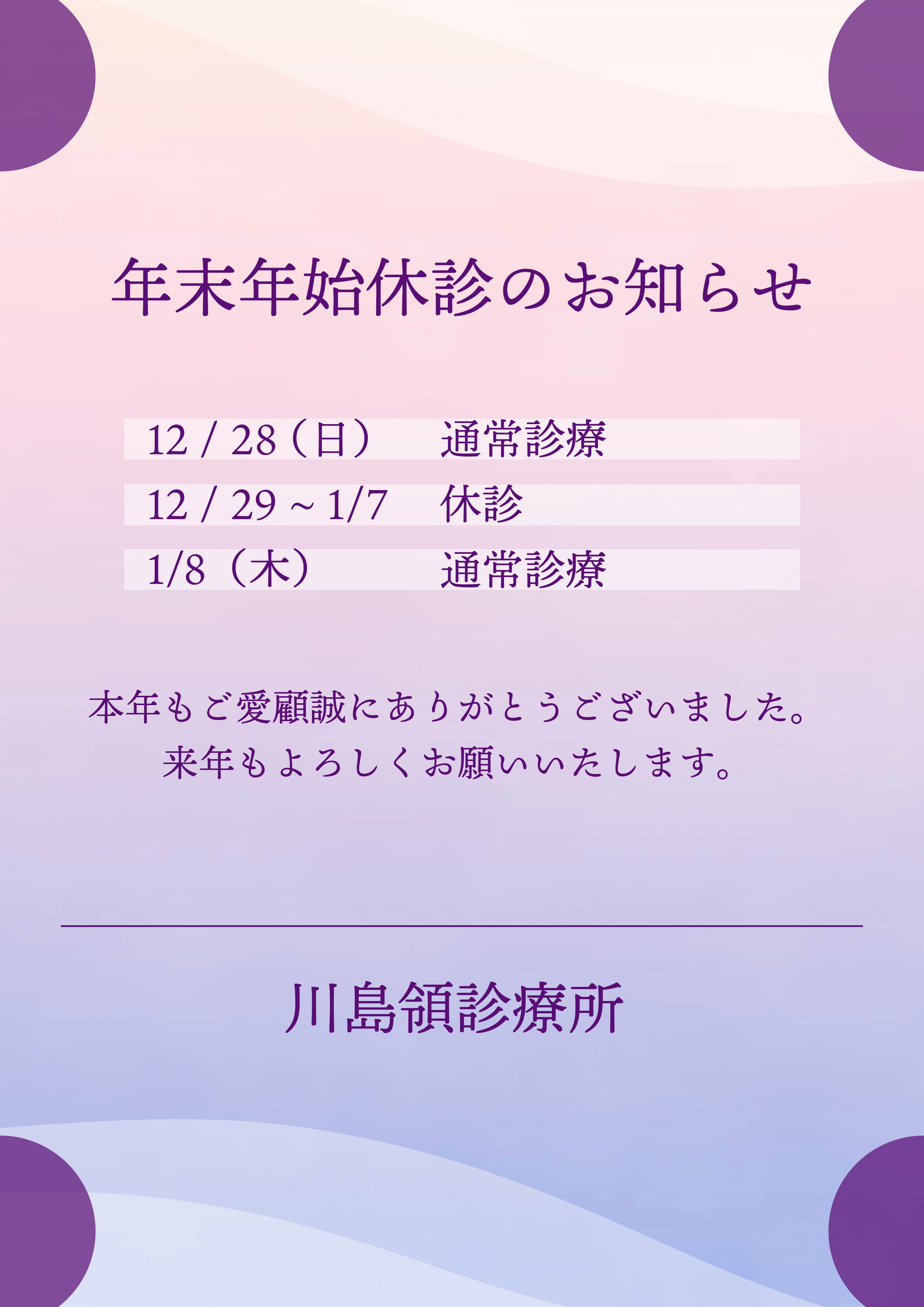 いつも当院をご利用いただきまして、誠にありがとうございます。