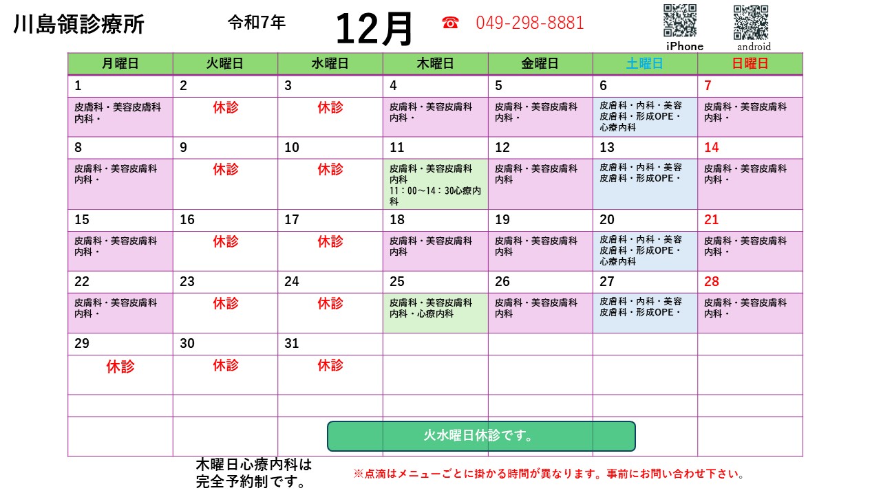 6月の完全予約制の心療内科診察は12日(木)のみになります。