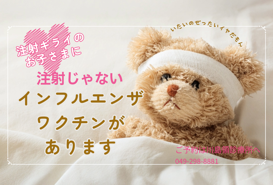 任意接種の価格は インフルエンザワクチン¥4,000 フルミスト(2歳から19歳未満の方向けインフルワクチンで点鼻型です)¥8,000